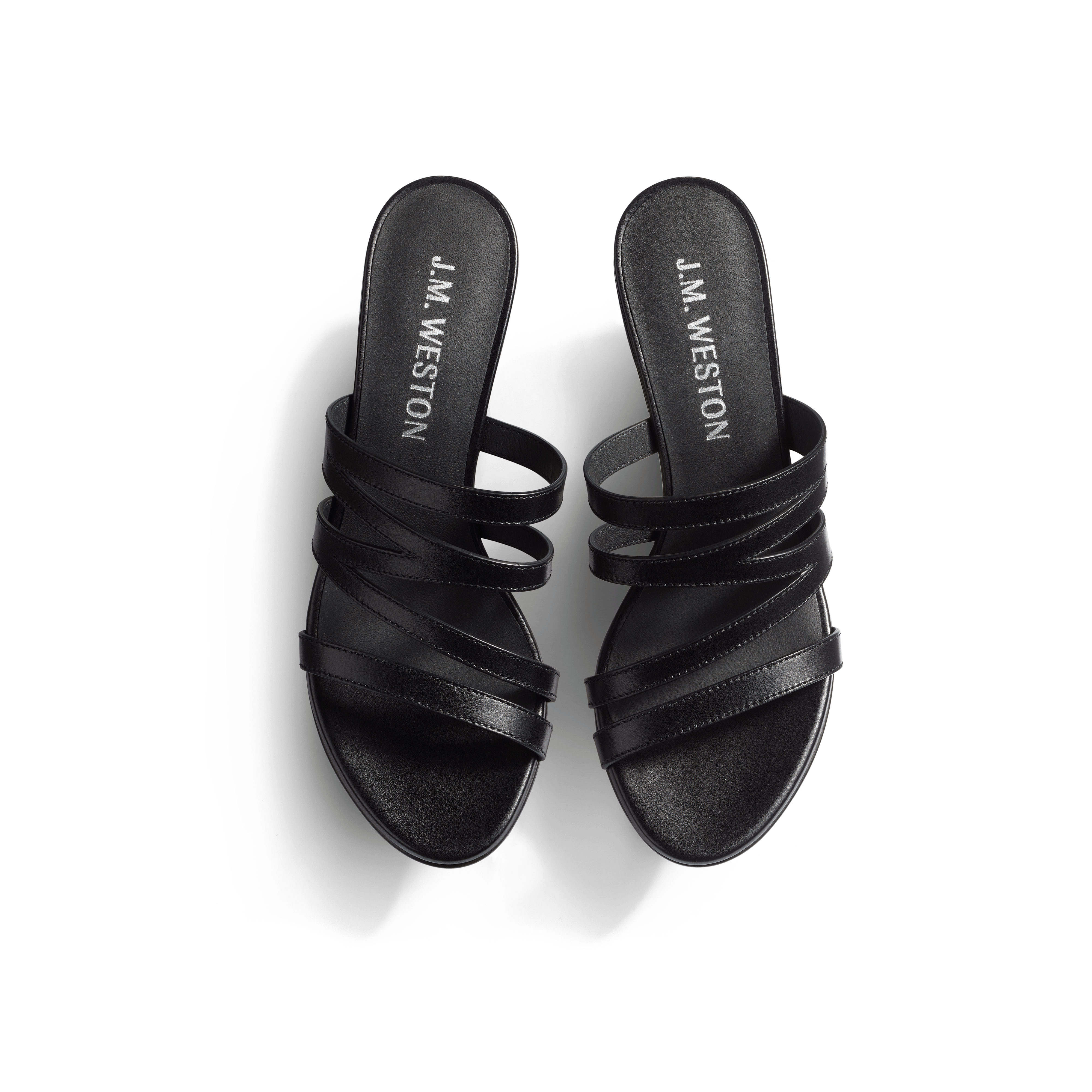 Subtilement signée grâce à l'enchevêtrement de ses brides qui forment un "W", la mule à talon Double V de J.M. Weston se porte avec des tenues décontractées ou habillées. Coupée dans un cuir de veau lisse noir souple et dotée d'une première moussée, elle garantit un confort et une élégance sans faille pour toutes les occasions.